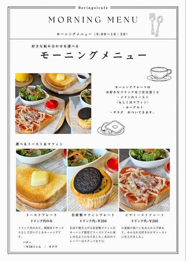 As you step inside, you'll be greeted by a warm atmosphere and friendly staff, fluent in English, ensuring you feel right at home. Whether you're starting your day with a モーニング (morning set) from 9:00 to 10:30, or indulging in a leisurely ランチ (lunch) from 11:00 to 15:00, Beringei offers a delightful selection to satisfy your palate. Picture yourself enjoying fluffy バタートーストモーニング, served with a side of fresh salad and creamy yogurt. If you're in the mood for a touch of sweetness, you can easily switch to ジャムトースト for just 50 yen more, making your morning as pleasant as a sunny Gifu day.